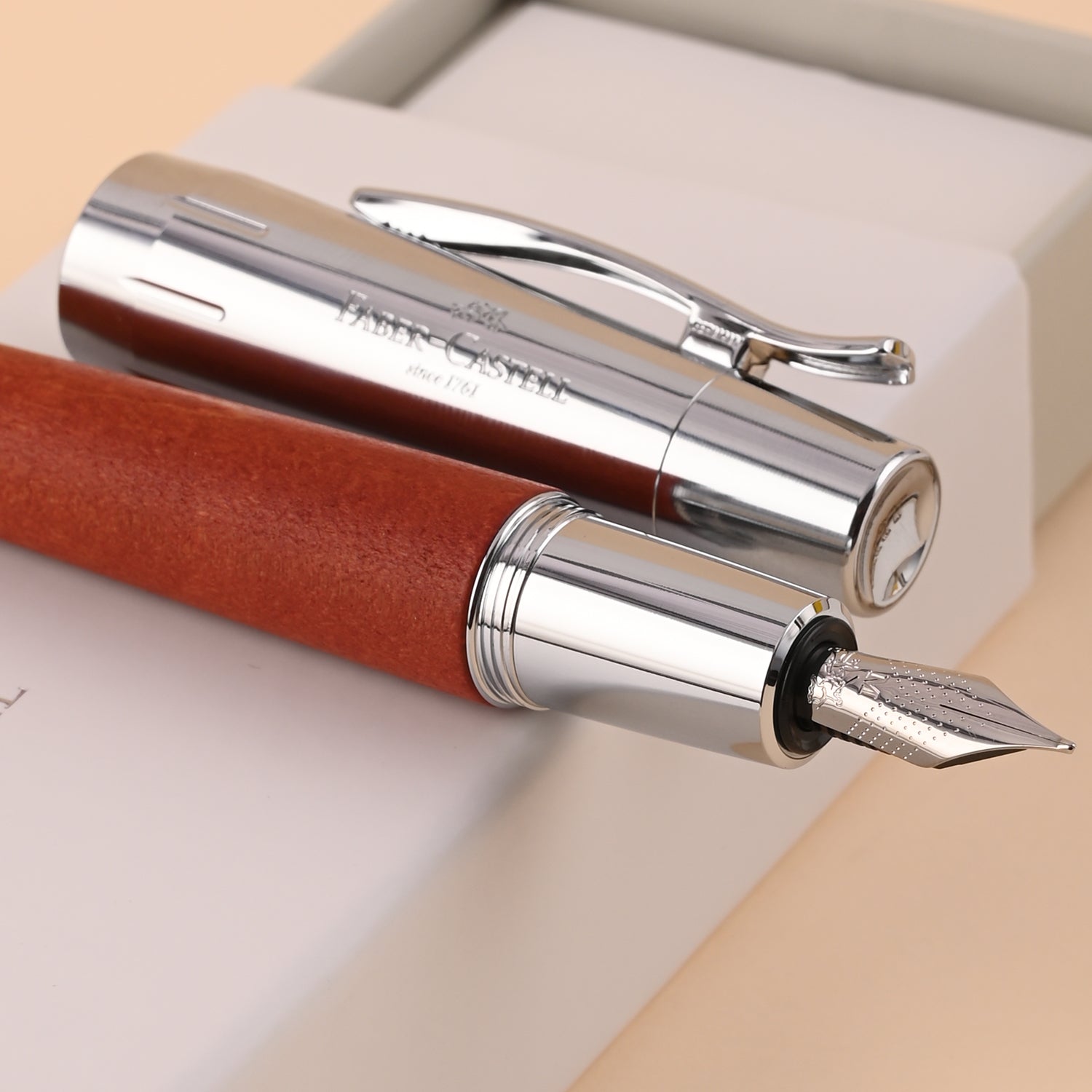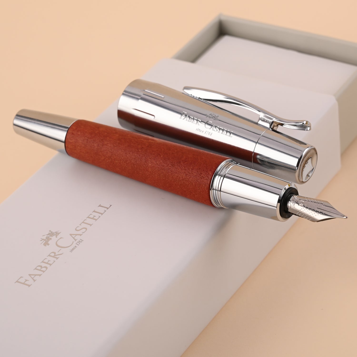 Faber-Castell E-motion Fountain Pen - Pearwood Reddish Brown CT 3