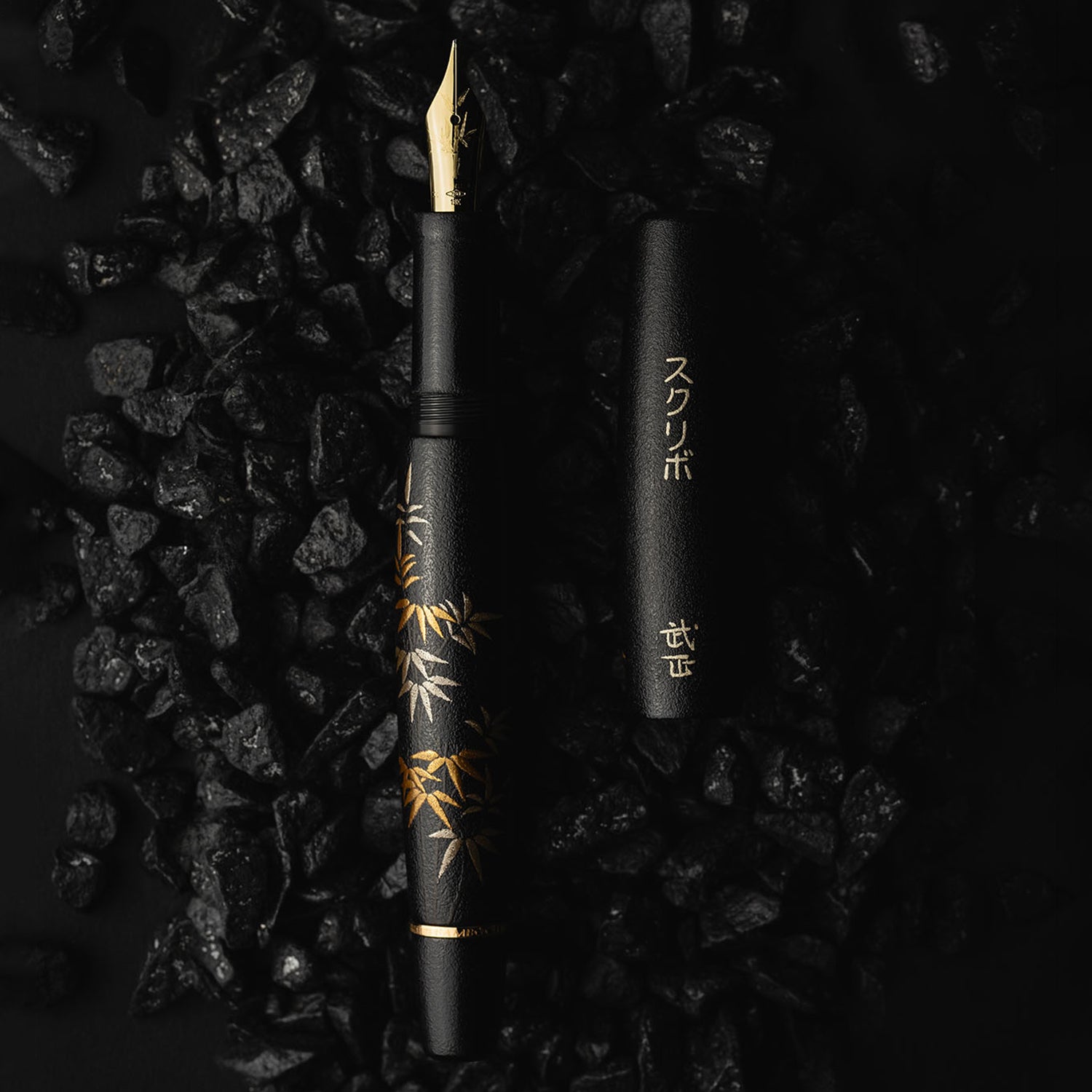 Resin and Lacquered with Ishime Black Powder and maki-e Gold & Silver Powder