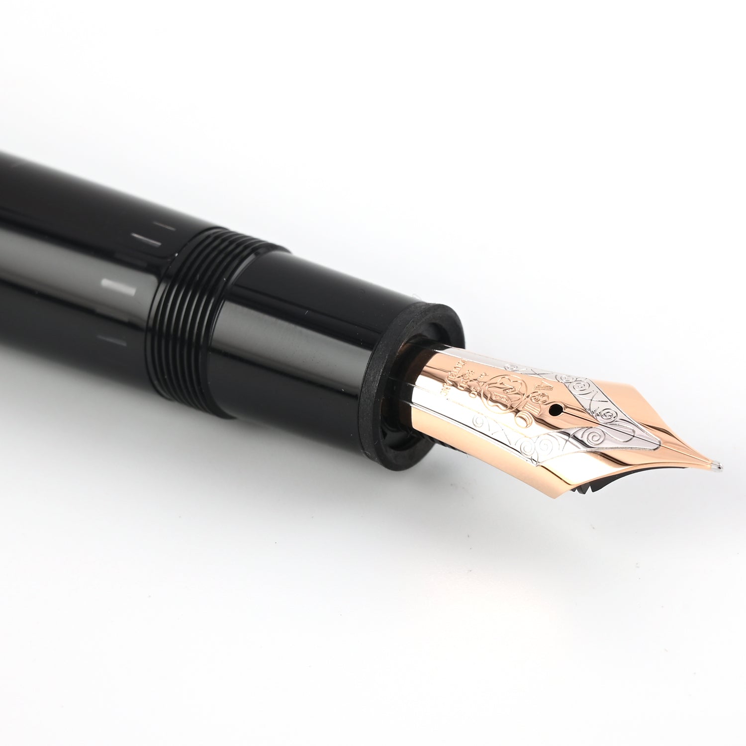 Hand-crafted 18K solid gold nib with rhodium inlay