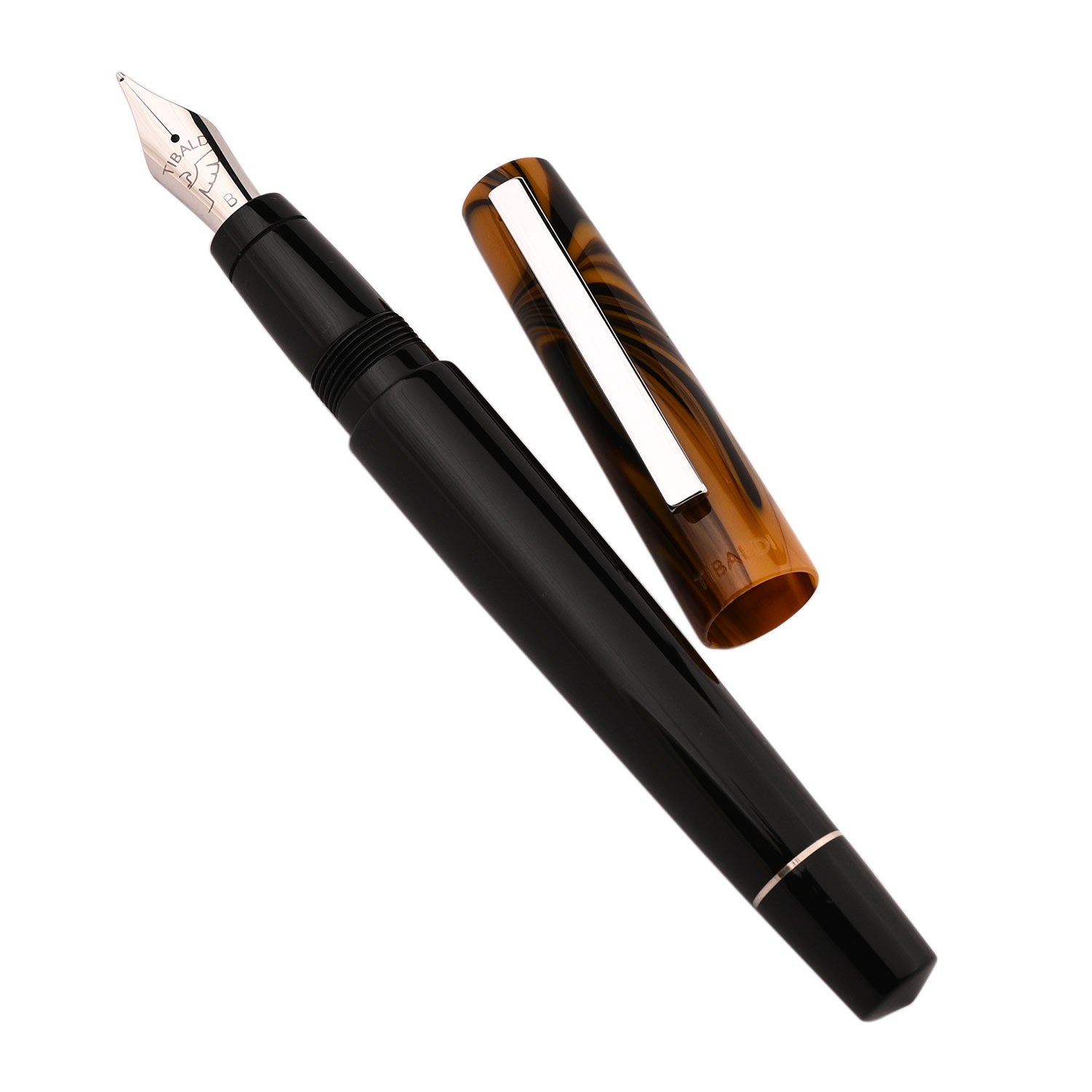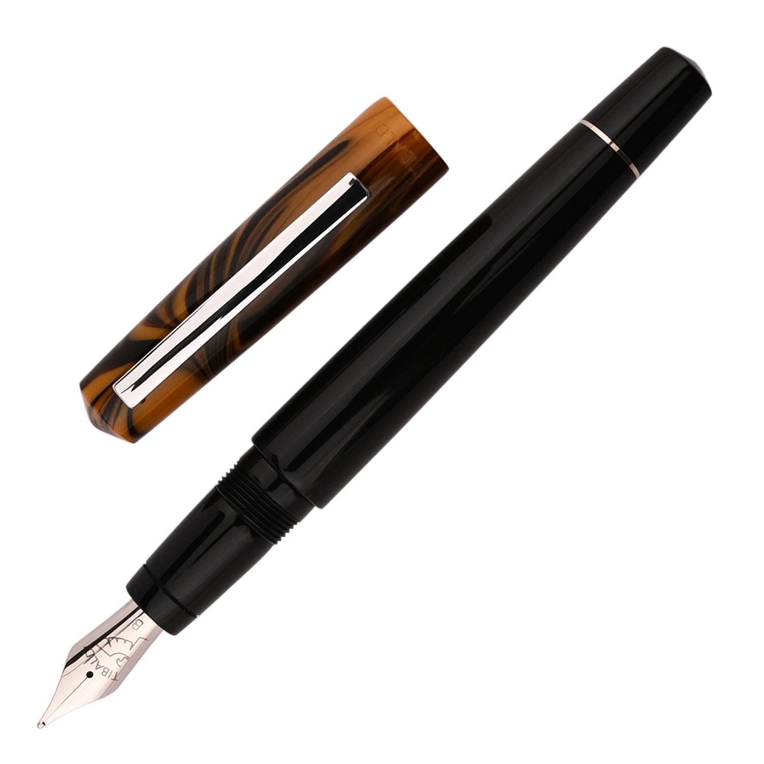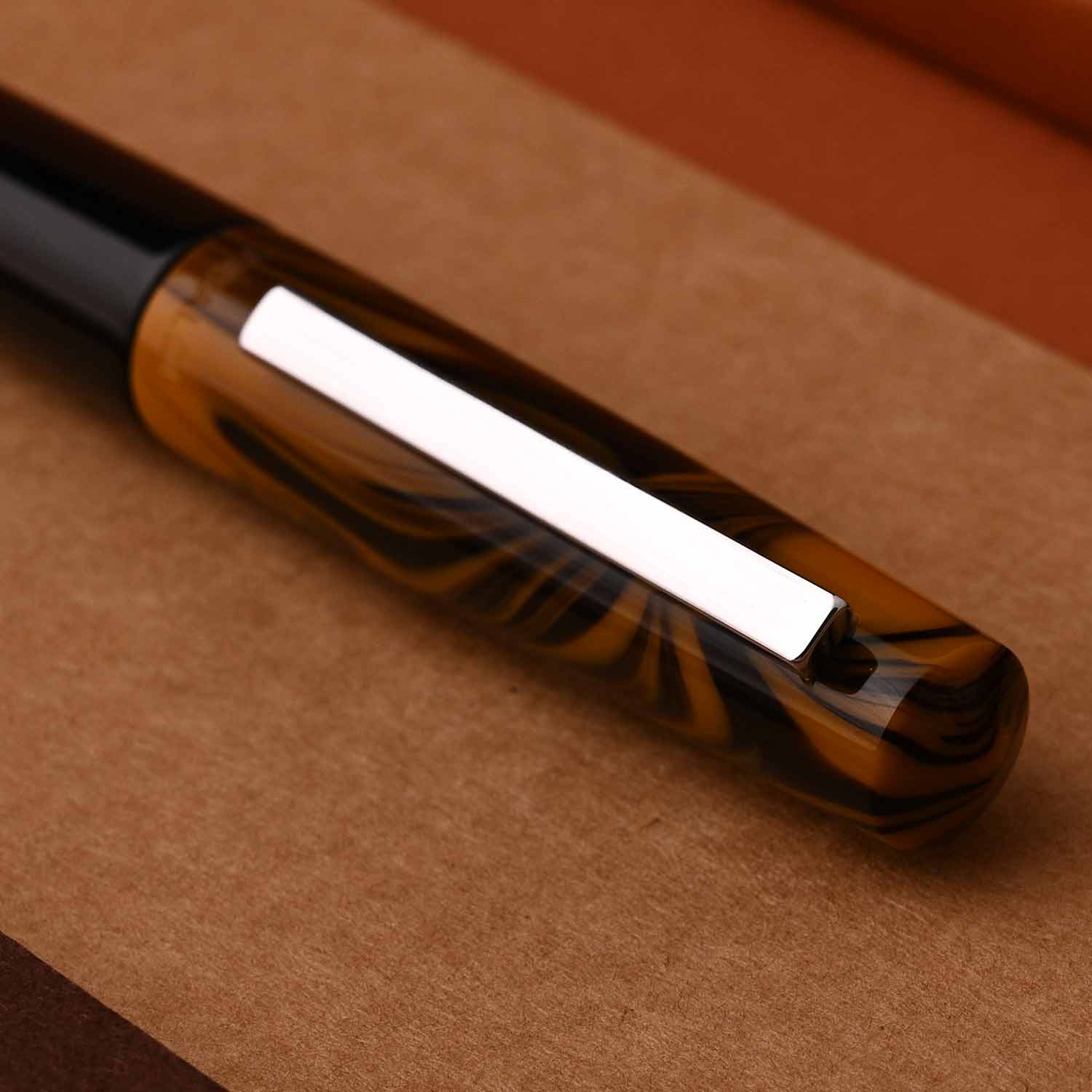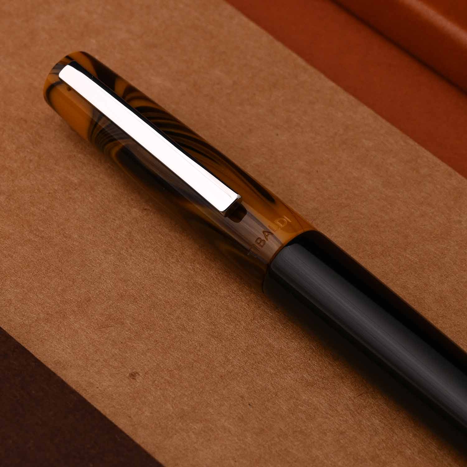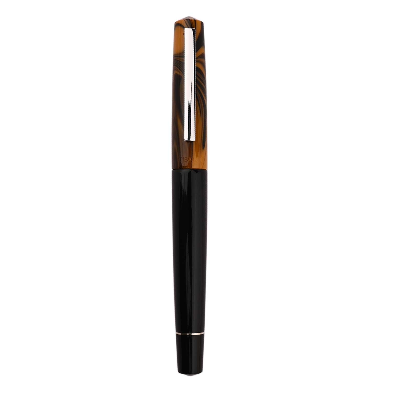 The Tibaldi Infrangibile Chrome Yellow fountain pen is a yellow with black swirled resin cap and black resin body fountain pen that features stainless steel trim - fitted with a stainless steel ebonite feeder nib. The subdued, but elegant Tibaldi Infrangibile fountain pen takes writing enthusiasts back to the '30s “golden age” style. Featuring a contrasting steel trim, this Chrome yellow Infrangibile fountain pen is a beauty and must have in your collection. If you are looking for a soft writing experience and a low weight pen with excellent nib and feed, this is definitely a pen you should look into. Tibaldi pens are well made, they have a light feel and excellent nibs and they do have that ebonite feed to really make sure the pen writes with a great flow. The Infrangibile Collection comes in over six shades like Rich Black, Mauve Red, Ginger Beige, Nude, Russet Red and Peacock Blue.