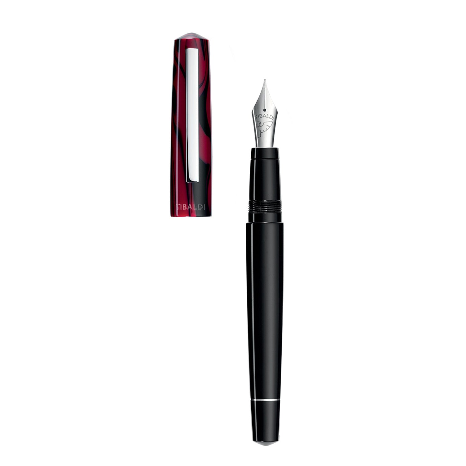 The Tibaldi Infrangibile Mauve Red fountain pen is a deep red swirled resin cap and black resin body fountain pen that features stainless steel trim - fitted with a stainless steel ebonite feeder nib. The subdued, but elegant Tibaldi Infrangibile fountain pen takes writing enthusiasts back to the '30s “golden age” style. Featuring a contrasting steel trim, this Mauve Red Infrangibile fountain pen is a beauty and must have in your collection. If you are looking for a soft writing experience and a low weight pen with excellent nib and feed, this is definitely a pen you should look into. Tibaldi pens are well made, they have a light feel and excellent nibs and they do have that ebonite feed to really make sure the pen writes with a great flow. The Infrangibile Collection comes in over six shades like Rich Black, Mauve Red, Ginger Beige, Nude, Russet Red, Chrome Yellow and Peacock Blue.